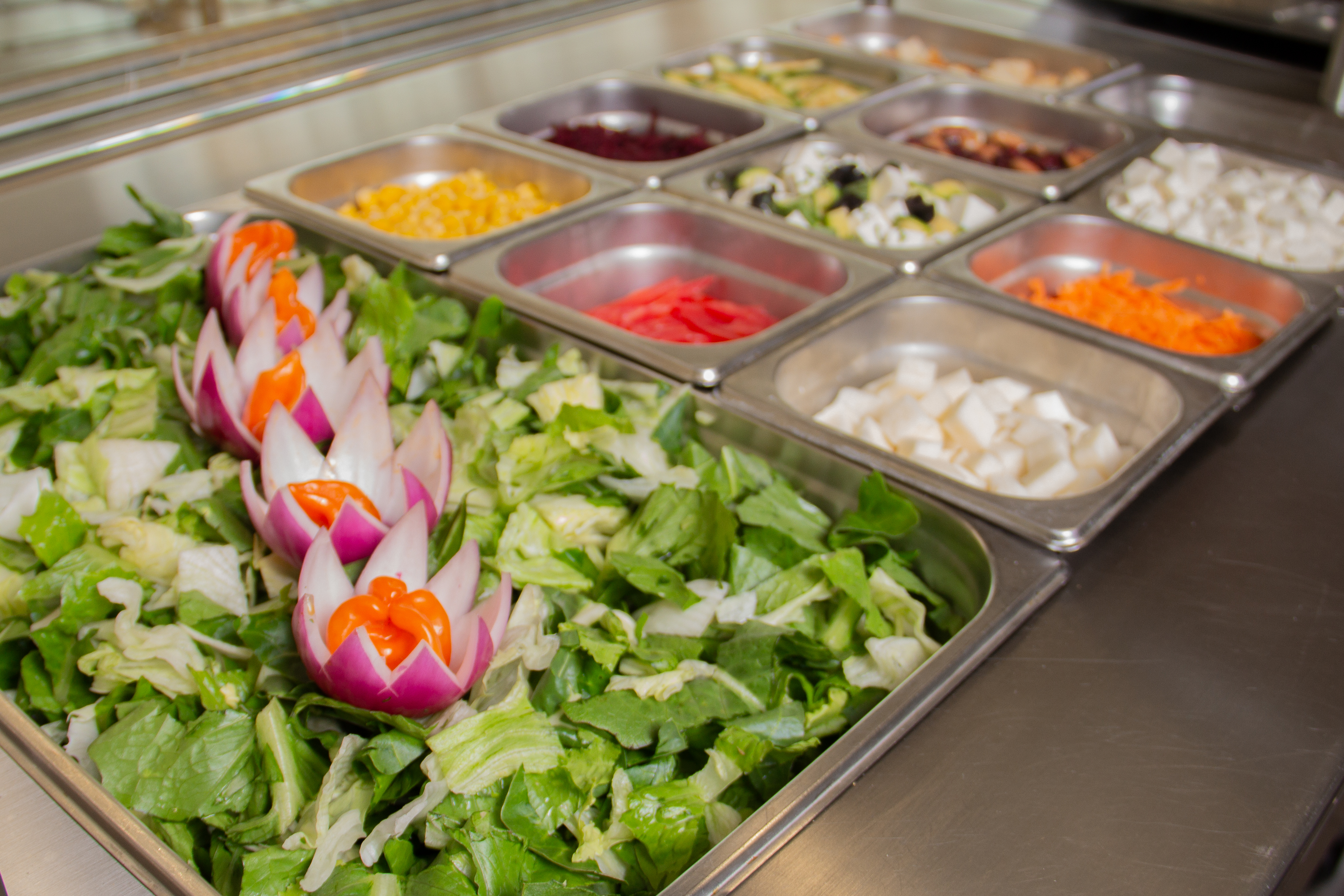 principal, dando el servicio del comedor en una barra caliente para dar un excelente