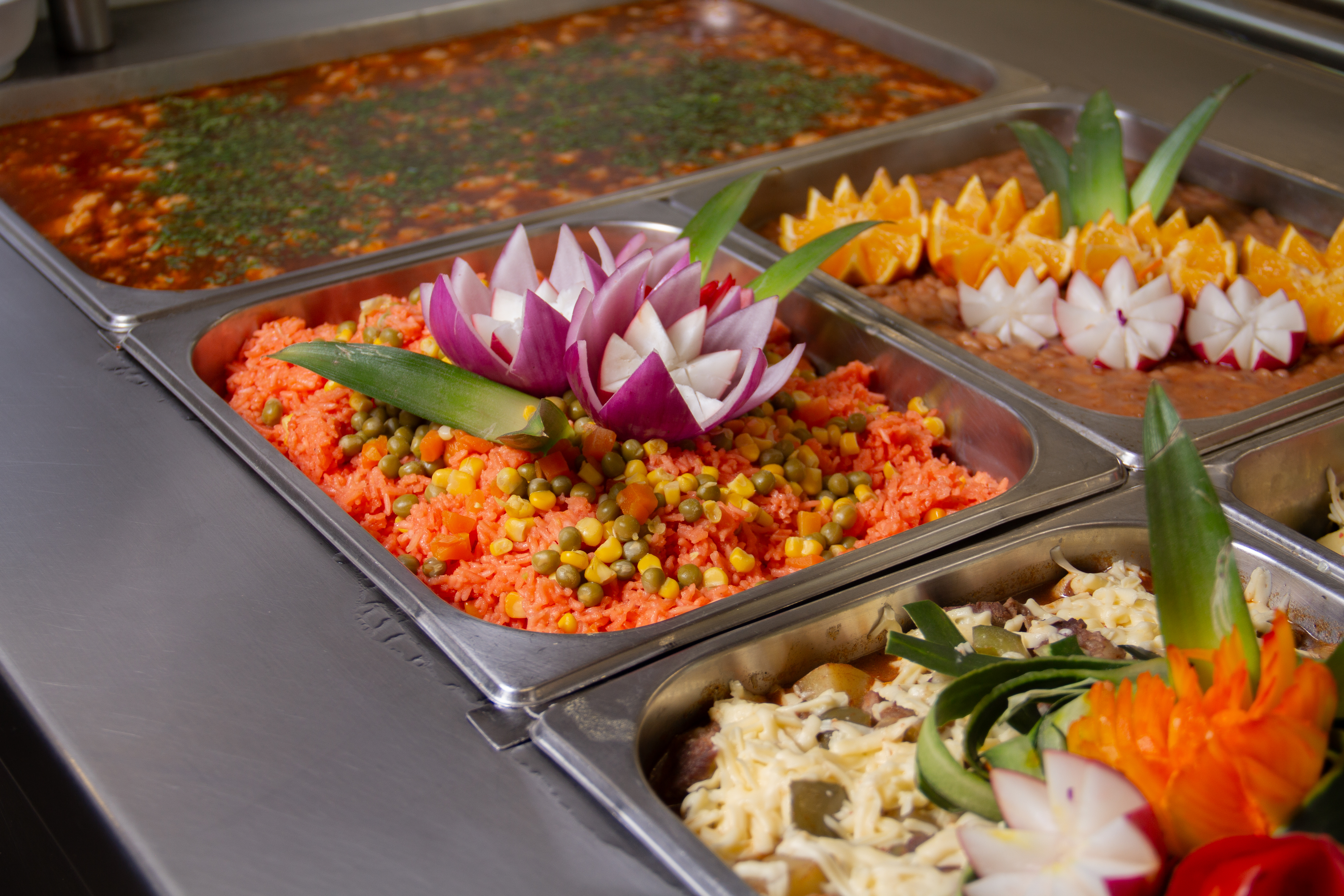 Operación de alimentos elaborados en nuestra cocina principal, transportados en